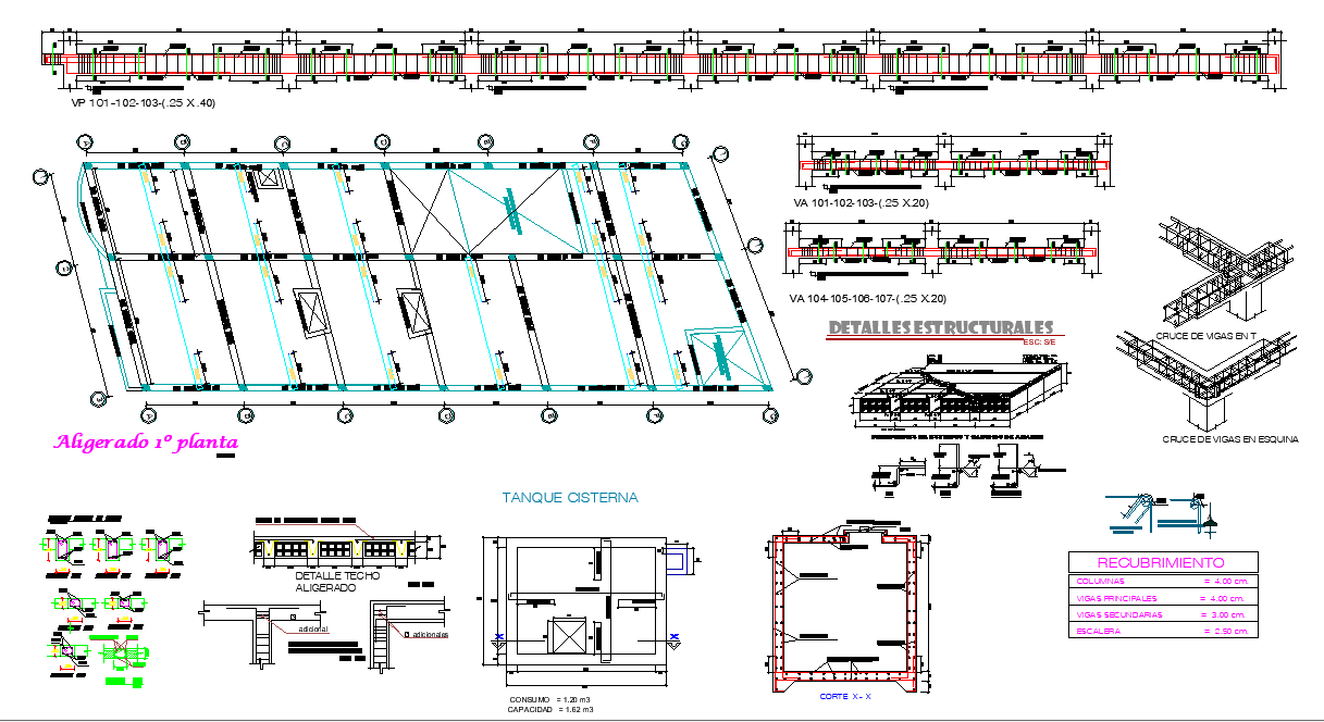 Beam plan and section layout file, reinforcement detail, septic tank detail, bolt nut detail, column and beam detail, centre line detail, dimension detail, column section detail, etc.