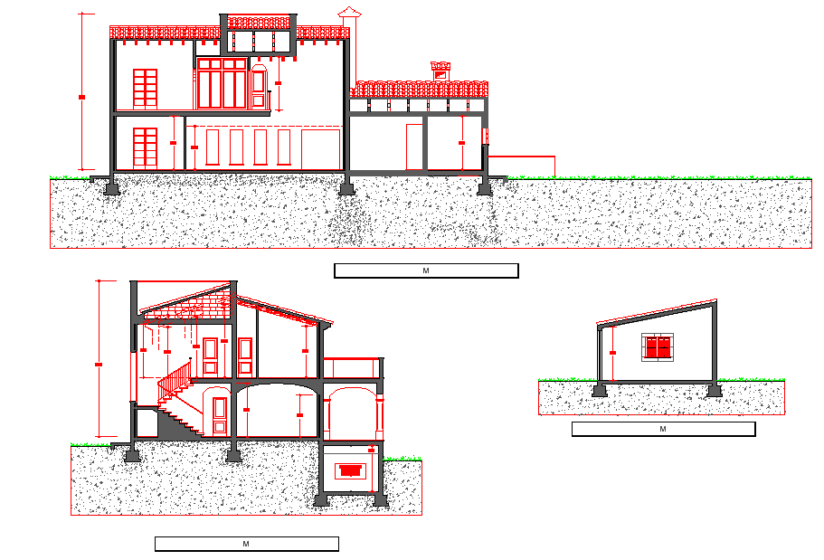 Detail of section home detail dwg file, dimension detail, furniture detail in door and window detail, foundation detail, stair detail, landscaping detail in grass detail, parapet detail, etc.