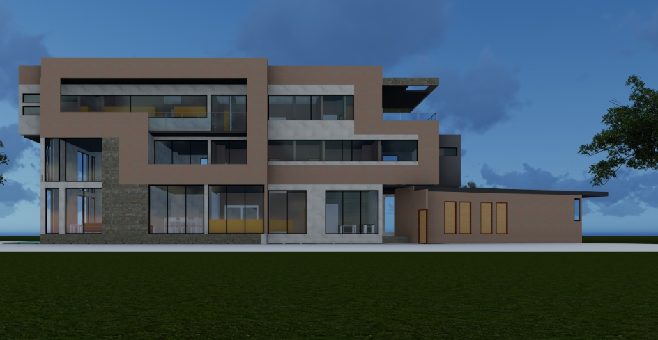 3 D house plan detail layout file, front elevation view detail, landscaping detail in tree and plant detail, glass fiber detail, etc.