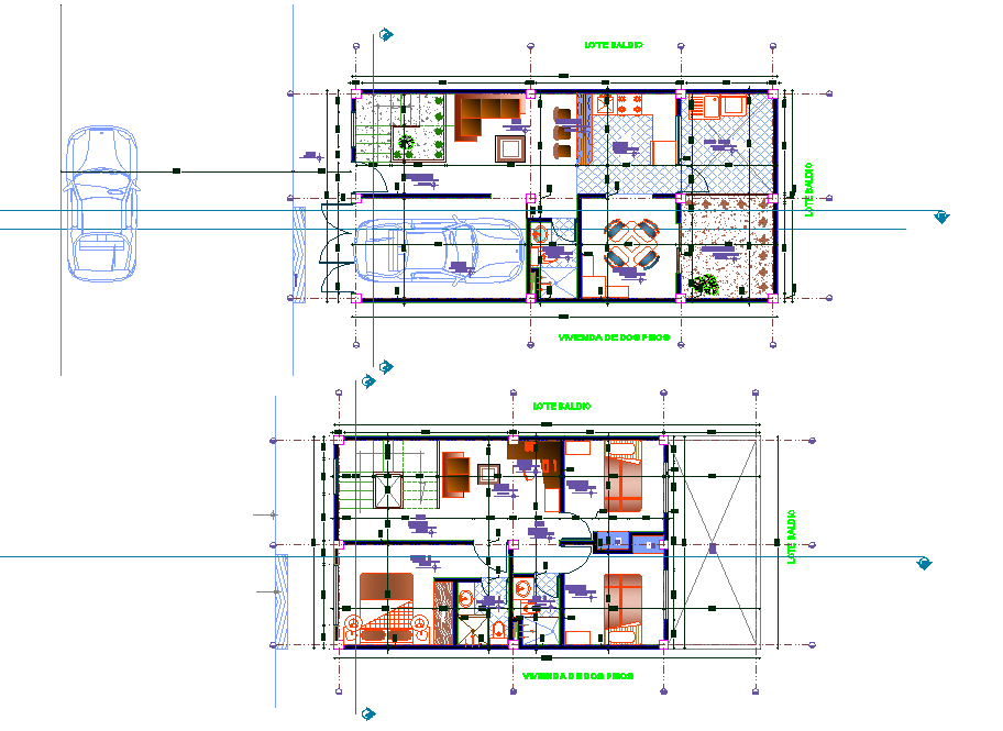 Working Home planning detail autocad file, car parking detail, furniture detail in bed, table, chair, door and window detail, stair detail, centre lien detail, section line detail, cut out detail, etc.