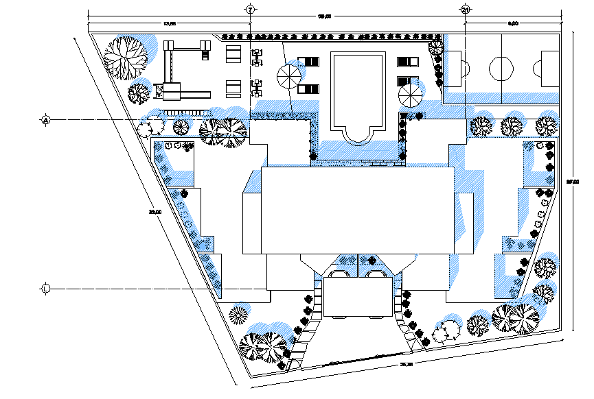 Plot home plan layout file, landscaping detail in tree and plant detail, section lien detail, dimension detail, furniture detail in door and window detail, etc.