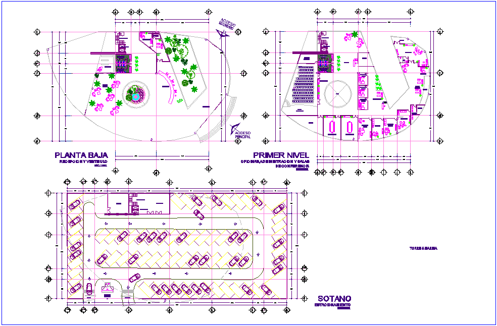 First and basement plan of tower dwg file in basement plan with view of area distribution and view of
