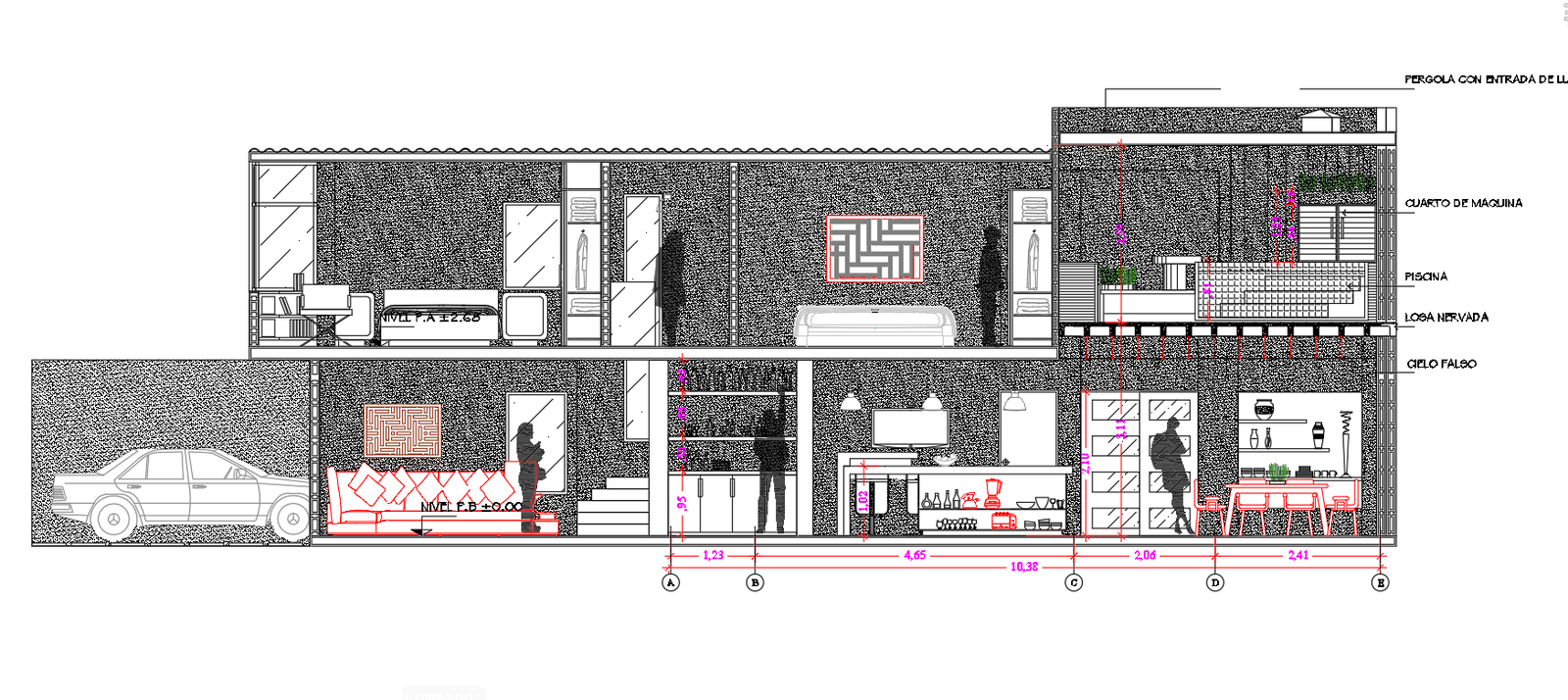 Cafe and bar restaurant details, front sectional detailing of restro with human figure detailing, furniture details etc