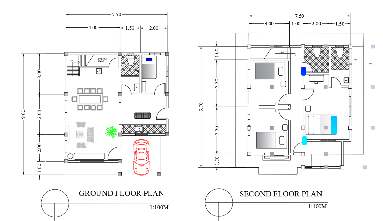 Ground floor and second floor layout plan, architectural plan dwg file,this project contains furniture details , tv unit, sofa, dining area, living room ,sofa etc