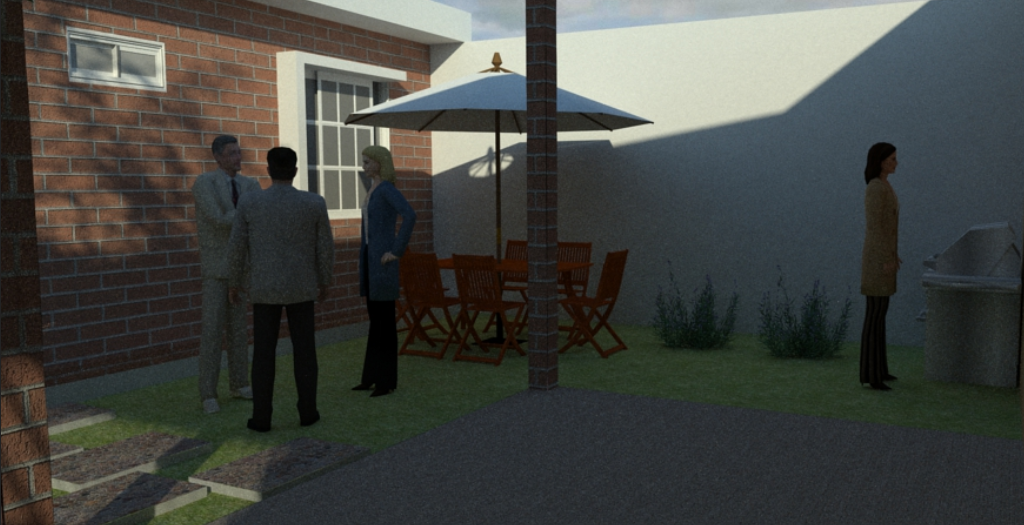 sectional detail of café, front 3d human figure details and furniture details in image form