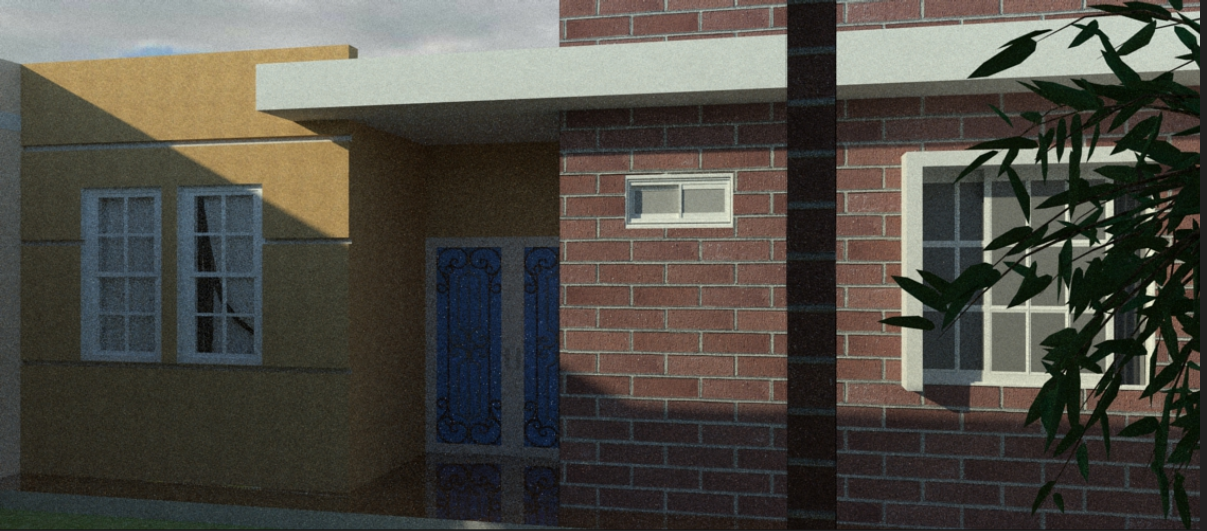 Brick structure building design, here there is window and door detailing and brick wall detailing design