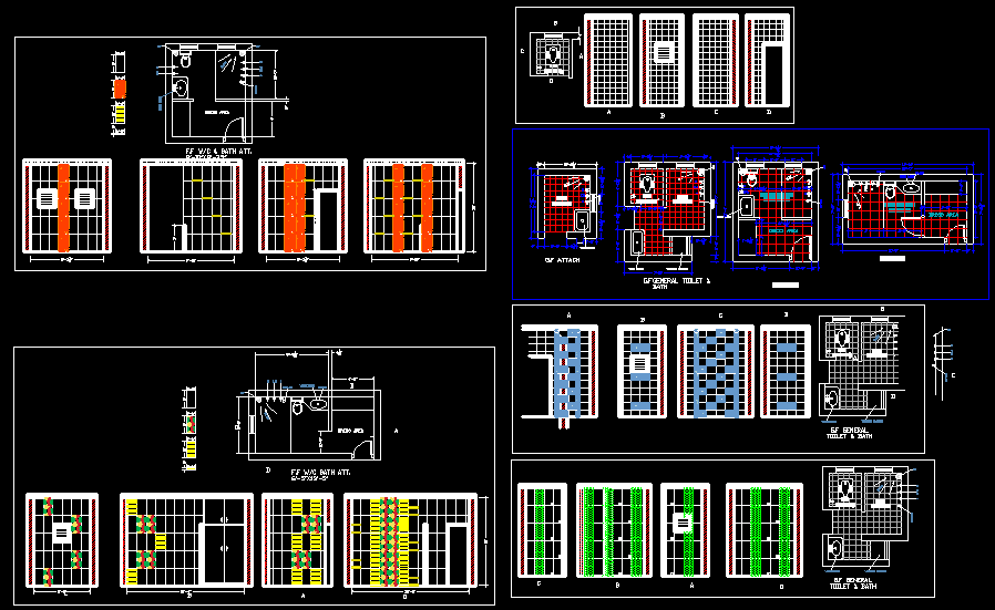 AutoCAD DWG Detailed Drawing of the Residential bathroom and Toilet section and elevation details are given in this DWG file. Sectional details are clearly given in this drawing file. Dimensions are clearly given in this diagram. The urinal, western toilet blocks, and washbasin, bathroom door , ventilator are available in this DWG file.