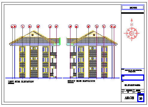 Here the Left side and right side elevation design drawing of residential building design drawing with center line marking and modern style elevation design drawing in this auto cad file.