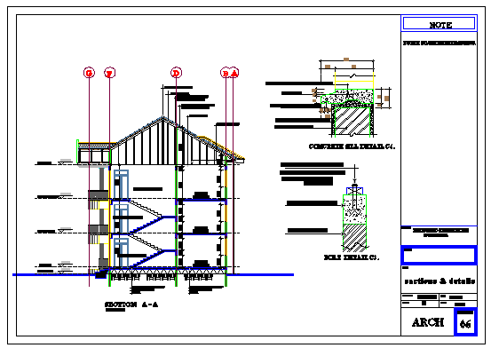 Here the Stair section detail design drawing of residential design drawing with detailing design, bolt detail design drawing, concrete sill detail design drawing with section design drawing in this auto cad file.