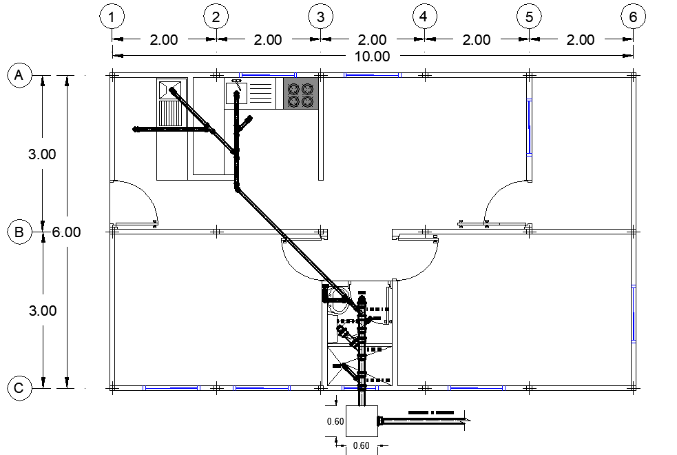 Water pipe house detail dwg file
