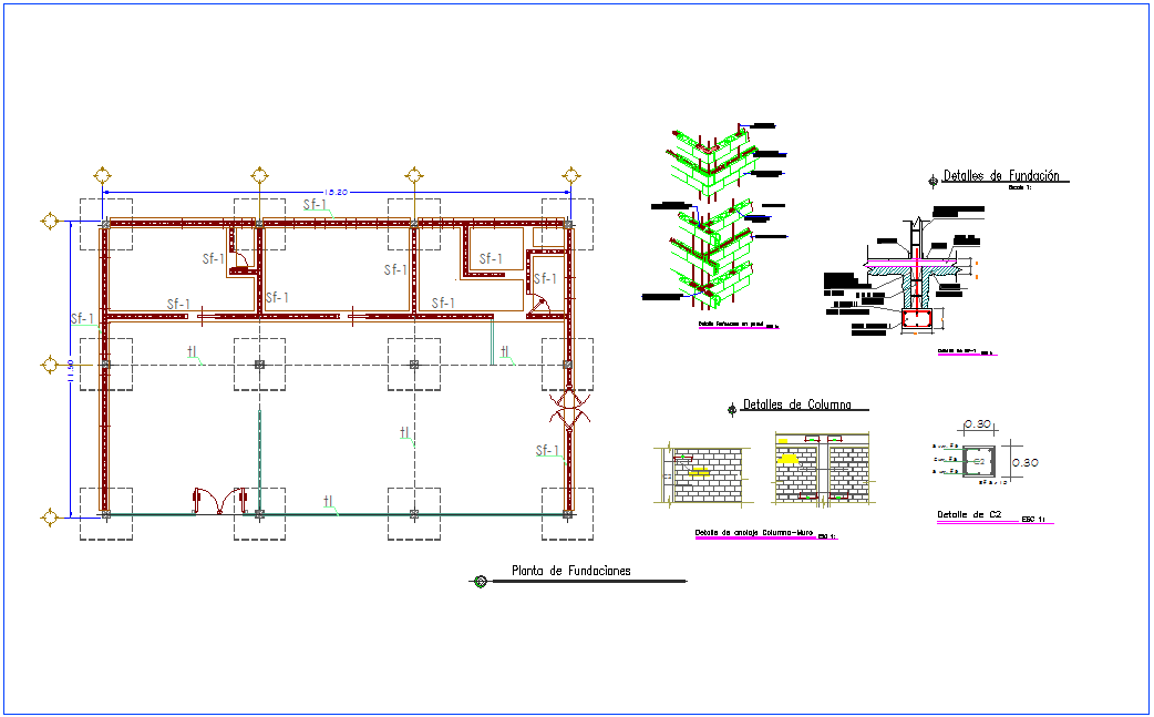 Foundation plan with construction detail dwg file in plan with view of area distribution and column