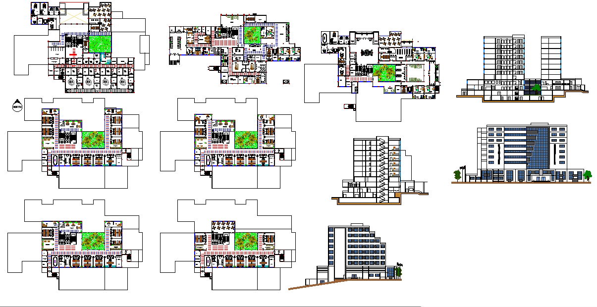 A teaching hospital combines assistance to people with teaching to medical students and nurses and often is linked to a medical school, nursing school or university. Training Hospital Project file DWG, Training Hospital Project file Download file, Training Hospital Project file Design file