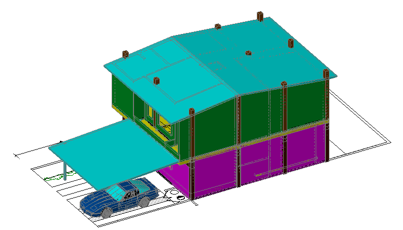 Front 3d elevation design of house, 3D elevation of house, 3d detailing of house, top view and front view design in auto cad format