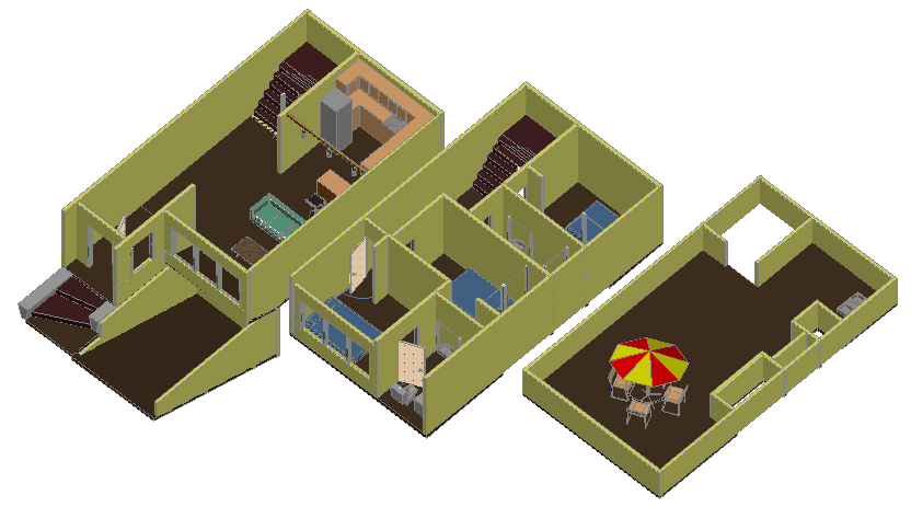 Top view 3d detail of a club house, here there is top view of club house, play area is shown, dining area is also shown etc