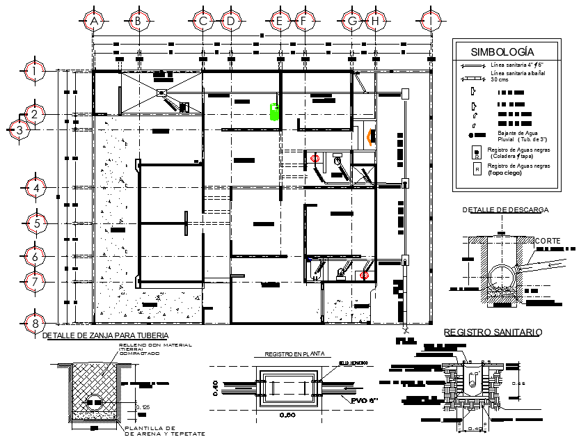 Detail trench for tiberias plan autocad file, dimension detail, centre lien detail, symbol detail, tank detail, pipe detail, centre lien detail, etc.