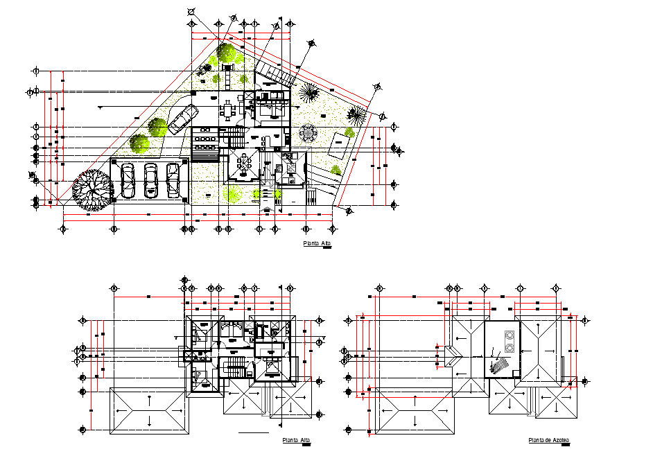 Planning home plan autocad file, ground floor to roof floor plan detail, centre lien detail, dimension detail, naming detail, landscaping detail in tree and plant detail, furniture detail in table, chair, bed, sofa, door and window detail, etc.