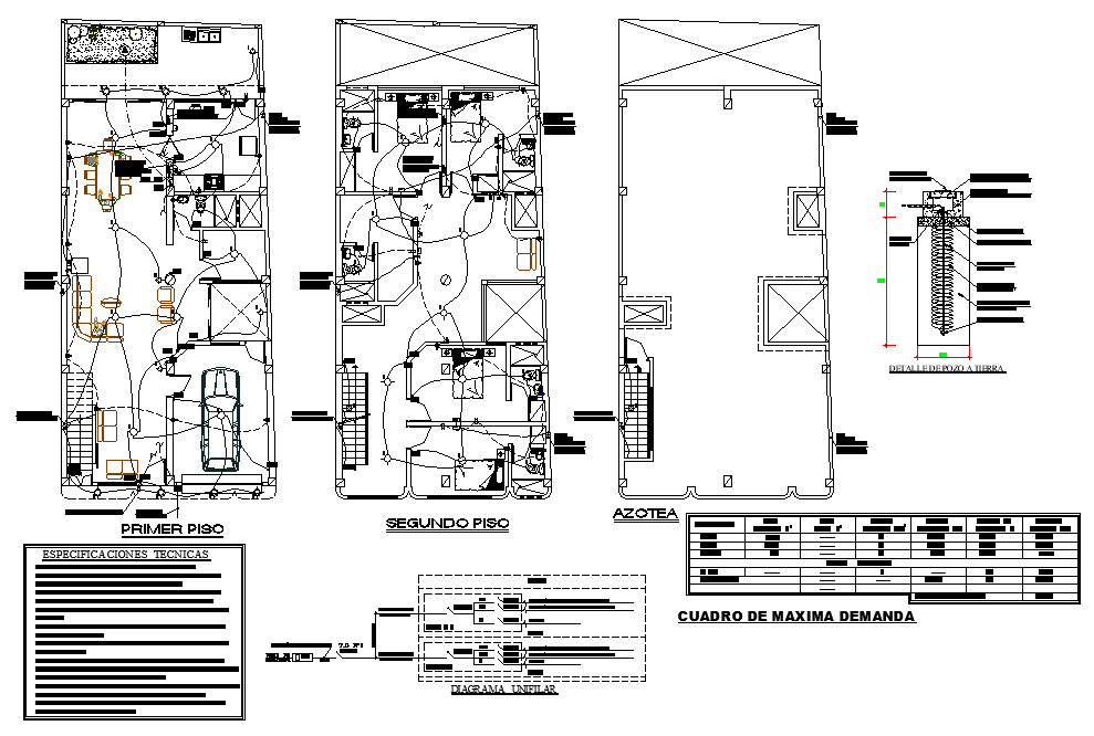 Electrical house plan detail dwg file, dimension detail, naming detail, cut out detail, furniture detail in table, chair, bed, sofa, door and window detail, ground floor to terrace floor detail, etc.