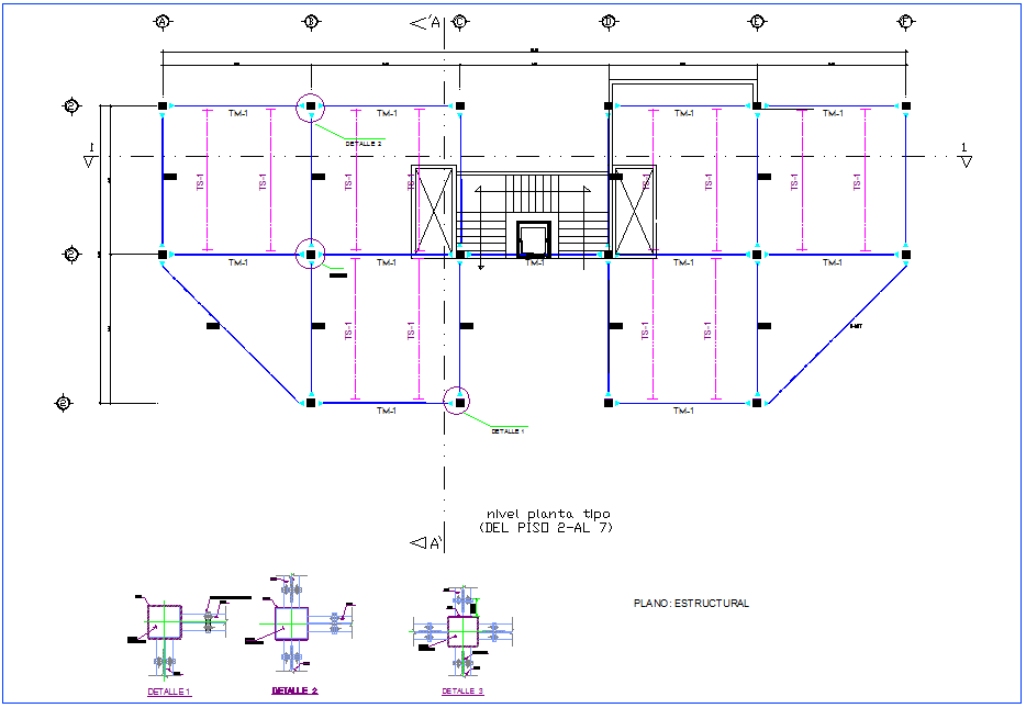 Floor 2 to 7 structural plan for office premises dwg file in second to seventh floor plan with view of