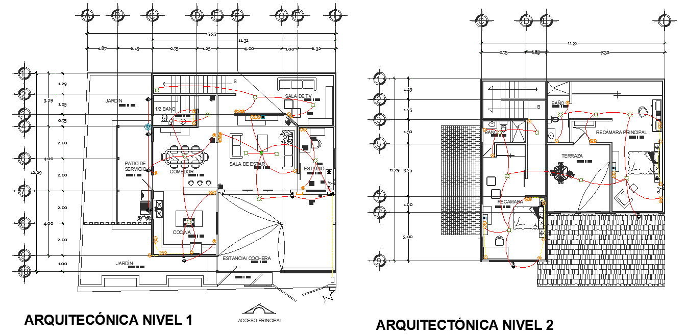 Electrical house plan detail autocad file, ground floor and first floor plan detail, centre lien detail, dimension detail, naming detail, cut out detail, toilet detail, etc.