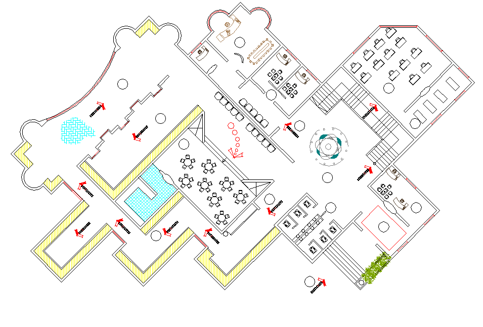Plan Low cost housing autocad file, leveling detail, furniture detail in door, window, table, chair, cub board and bed detail, landscaping detail in tree and plant detail, etc.