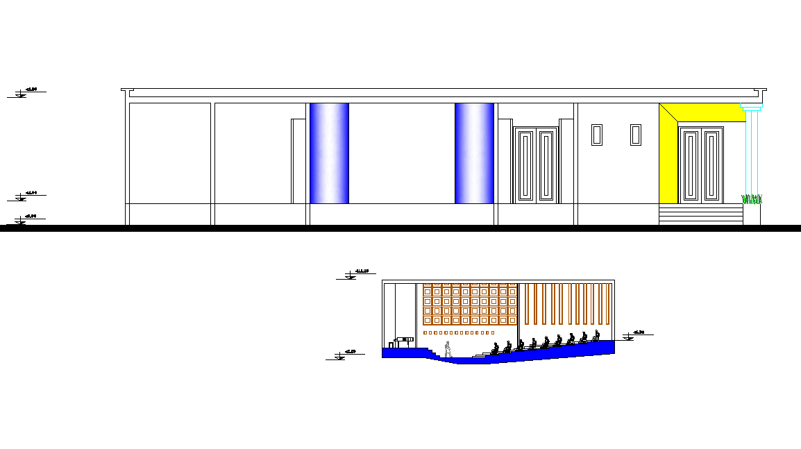 Elevation house plan detail dwg file, leveling detail, furniture detail in door and window detail, landscaping detail in grass detail, front elevation detail, side elevation detail, etc.