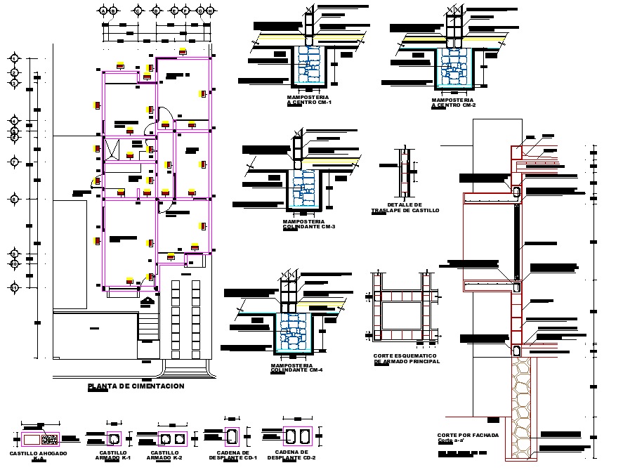 Detail of foundation plan detail dwg file, section plan detail, dimension detail, column section detail, naming detail, reinforcement detail, centre lien detail, etc.