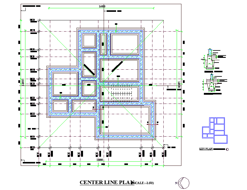Center line plan detail dwg file, dimension detail, naming detail, stair detail, etc.