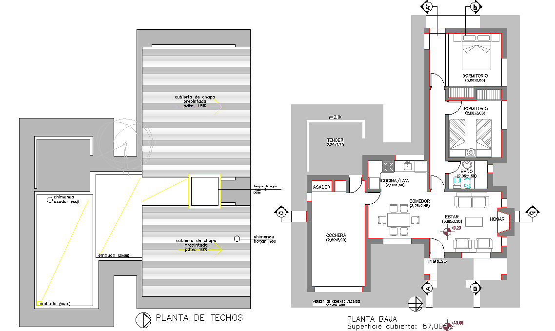 Cottage plan layout file, section lien detail, naming detail, furniture detail in table, chair, sofa, cub board and bed detail, leveling detail, etc.