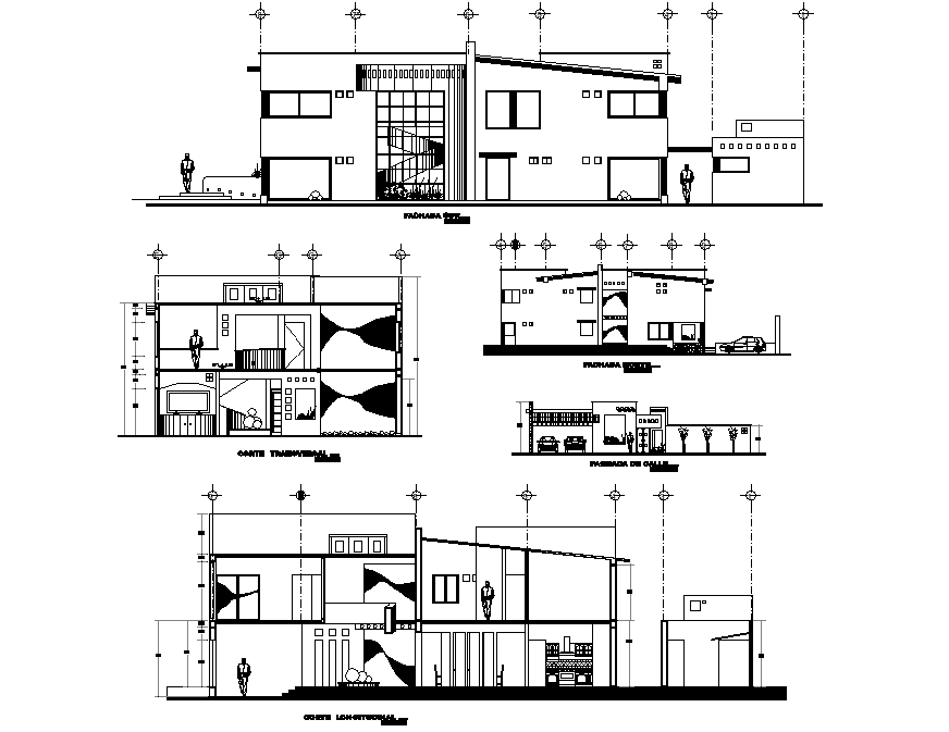 House room elevation and section plan layout file, centre lien detail, front elevation detail, side elevation detail, back elevation detail, section A-A’ detail, section B-B’ detail, etc.
