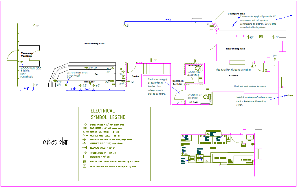 Electrical view with legend for office area dwg file in electrical view with view of office area with bar view and electrical symbol view and view of electrical line view.