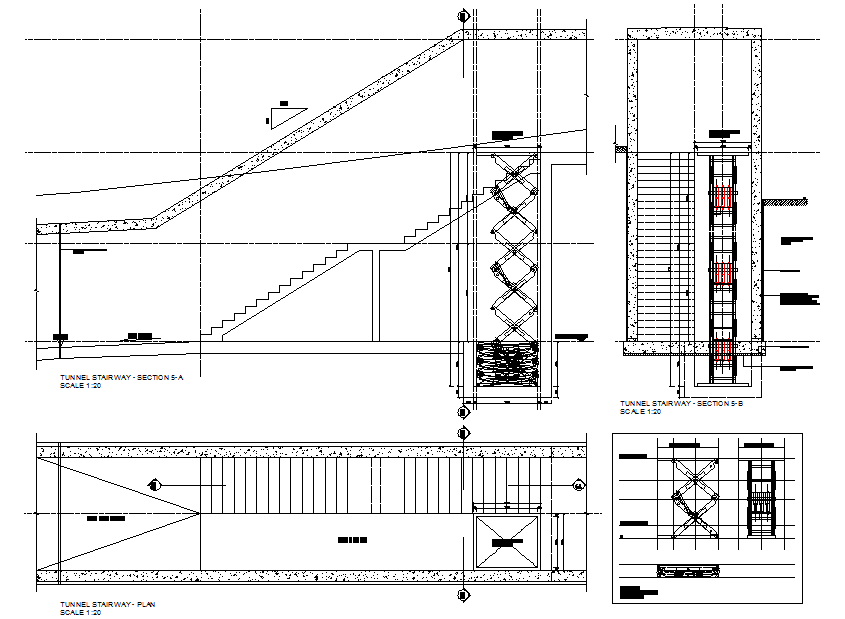 Stair Plan & Elevation Detail. Special types of stairs include escalators and ladders. A stairway, staircase, stairwell, flight of stairs, or simply stairs is a construction designed to bridge a large vertical distance by dividing it into smaller vertical distances, called steps.