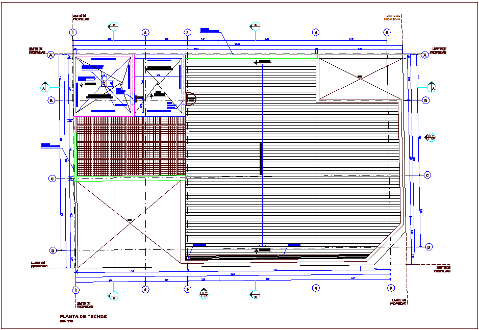 Roof plan of bank design with architectural view dwg file in plan with area view with wall and view of