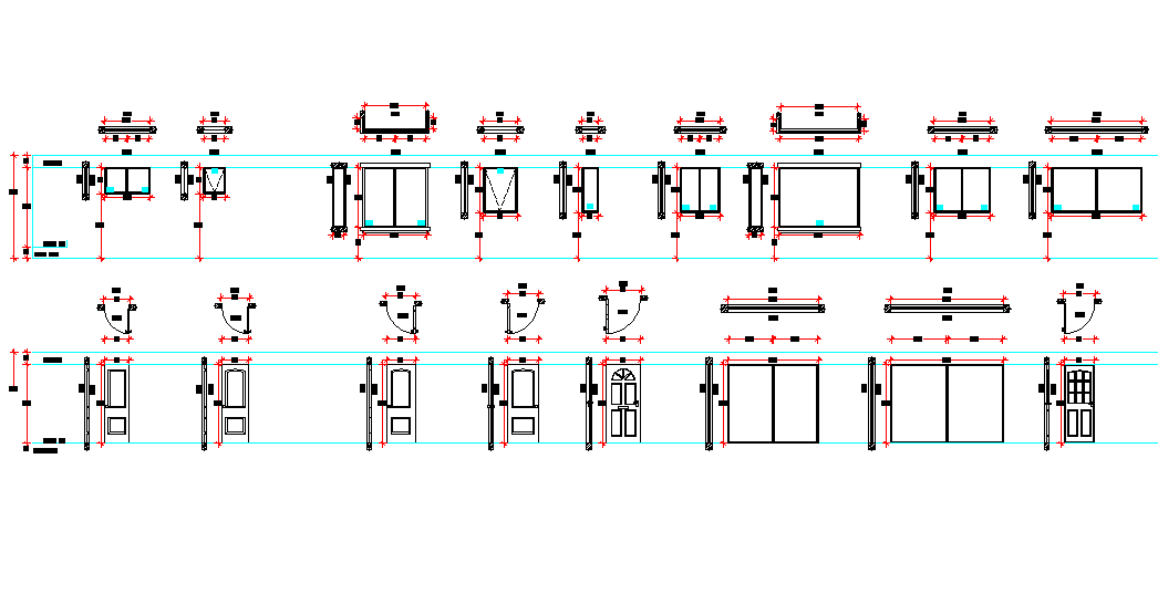 Door plan and section layout file, dimension detail, naming detail, different door design detail, door section detail, etc.