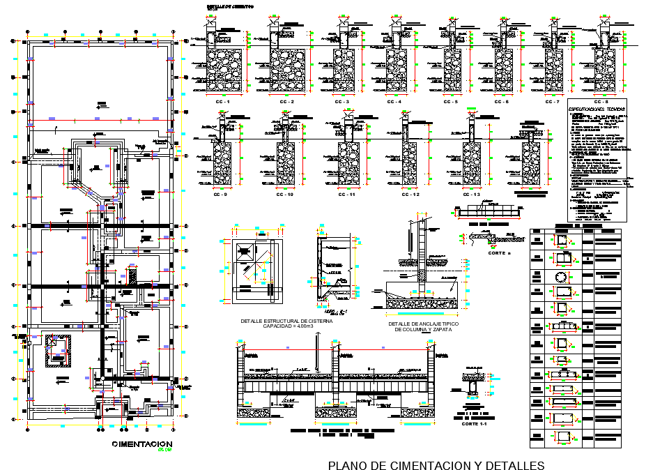 Beam plan and section detail dwg file, foundation section detail, column section table specification detail, dimension detail, naming n detail, centre lien detail, reinforcement detail, bolt nut detail, etc.