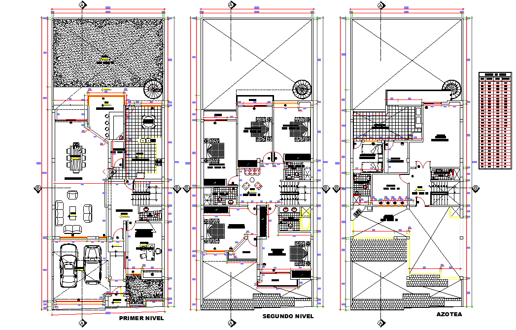 Single family home plan autocad file, centre lien plan detail, dimension detail, naming detail, specification detail, section lien detail, car parking detail, furniture detail in table, chair, sofa, bed, door and window detail, etc.