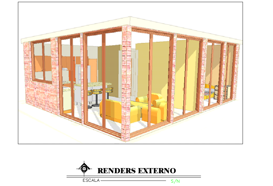 3 D living room plan detail dwg file, furniture detail in table, bed, chair, sofa, door and window detail, sliding door detail, brick wall detail, etc.