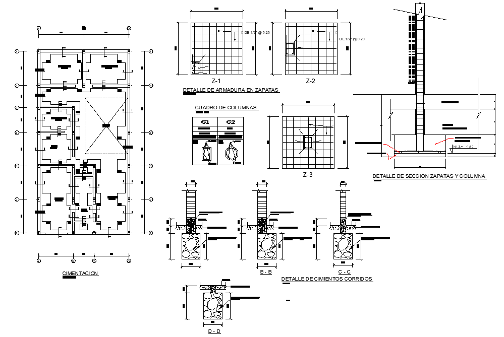 Foundation plan and section plan detail dwg file, centre lien plan detail, reinforcement detail, bolt nut detail, column section detail, dimension detail, naming detail, etc.