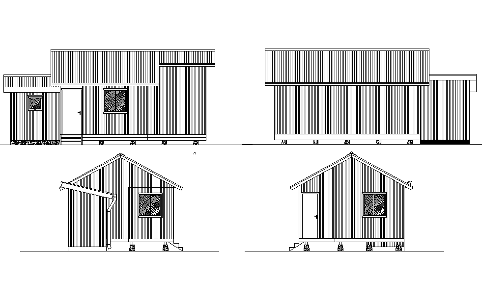 Elevation home plan autoacd file, front elevation detail, left side elevation detail, right elevation detail, back elevation detail, furniture detail in door and window detail, etc.