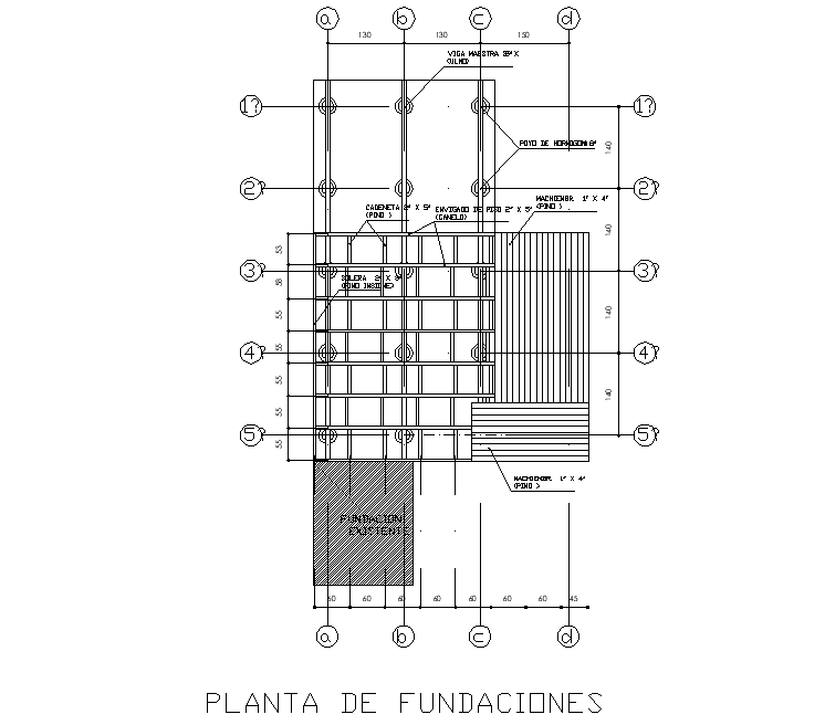 Foundation plan detail dwg file, centre line detail, dimension detail, naming detail, reinforcement detail, bolt nut detail, etc.