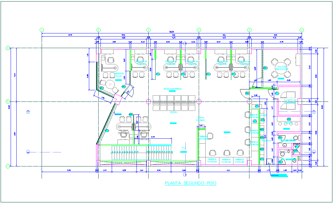 Second floor plan with architectural view for banking agency dwg file in plan with area distribution view and view of entry way,bank executive office area,meeting room,kitchen,office area,washing area