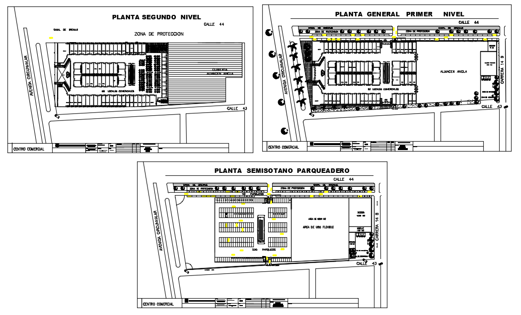 Different layout Shopping center dwg file. With elevation of super market, furniture detail, section detail, etc.