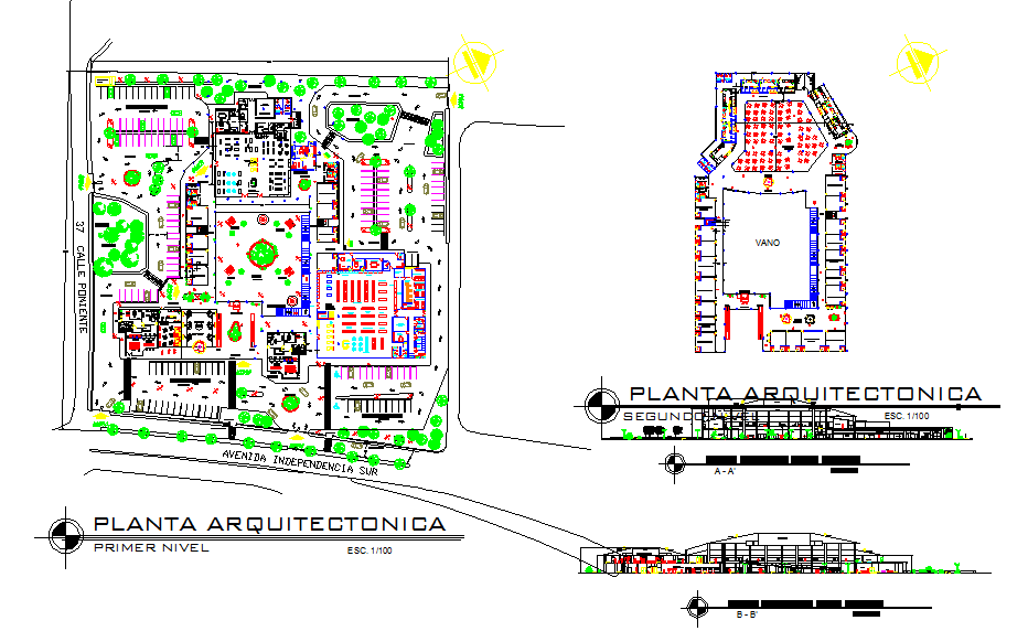 Bus terminal design concept plans. parking lot, secretary and information and balance inquiry, meeting room, commercial premises type a, Department store, control booth administrative, seccion transversal centro comercial.
