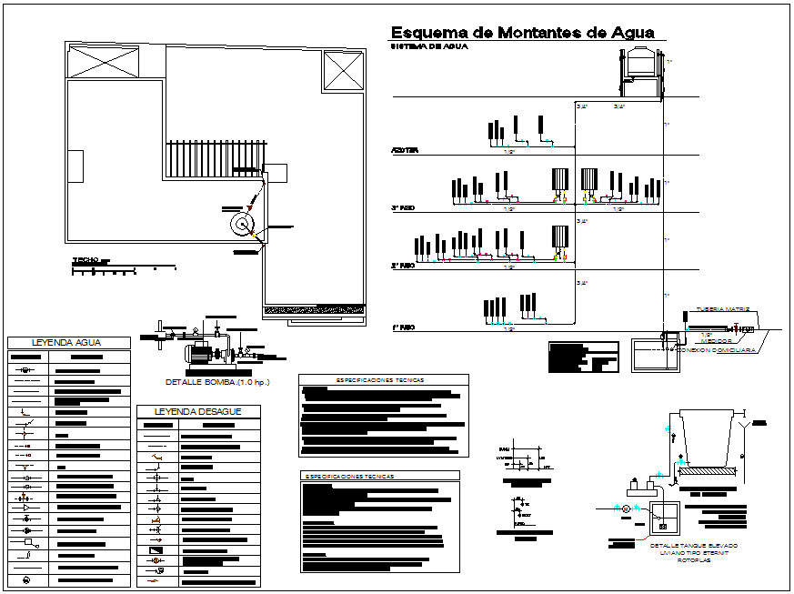 Outline of Water Stiles view with ceiling plan with sanitary view for housing area dwg file in ceiling plan with view of housing area and view of sanitary view with single water line with its joint and legend and view of outline of Water Stiles view schematic diagram with necessary dimension.