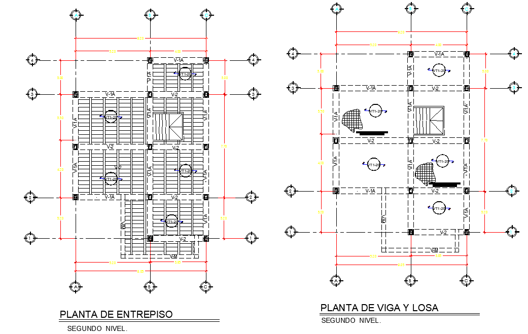 Beam and roof Residential housing layout file, centre line plan detail, dimension detail, naming detail, beam numbering detail, etc.