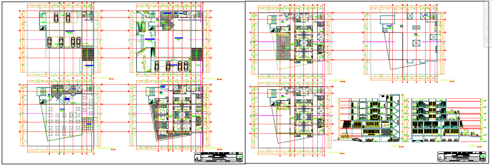 Modern Hign-Rise Hotel DWG, Modern Hign-Rise Hotel Download file, Modern Hign-Rise Hotel Detail plan. interior design, false ceiling layout design, modern furniture design, left area and bedrooms of Hotel detailing.
