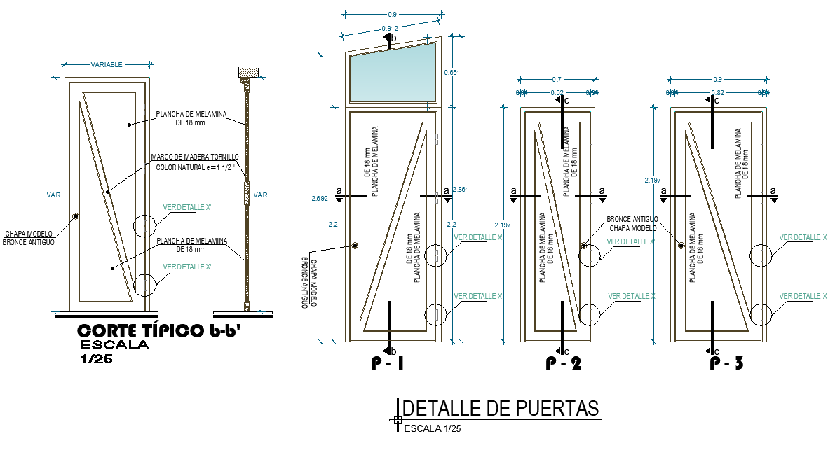 Door elevation plan layout file, section line detail, naming detail, scale 1:25 detail, dimension detail, single door detail, etc.