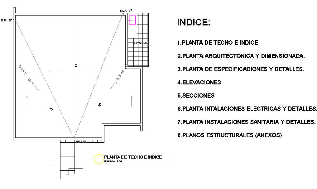 Roof house plan autocad file