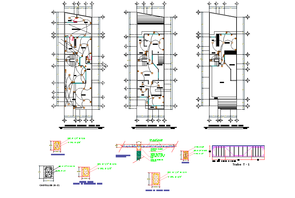 Electrical house plan detail dwg file, column section detail, beam section plan detail, stair detail, dimension detail, naming detail, reinforcement detail, bolt nut detail, etc.