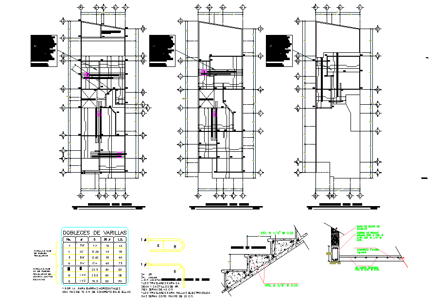 Structural house plan autocad file, centre lien plan detail, dimension detail, stair section detail, reinforcement detail, bolt nut detail, table specification detail, etc.