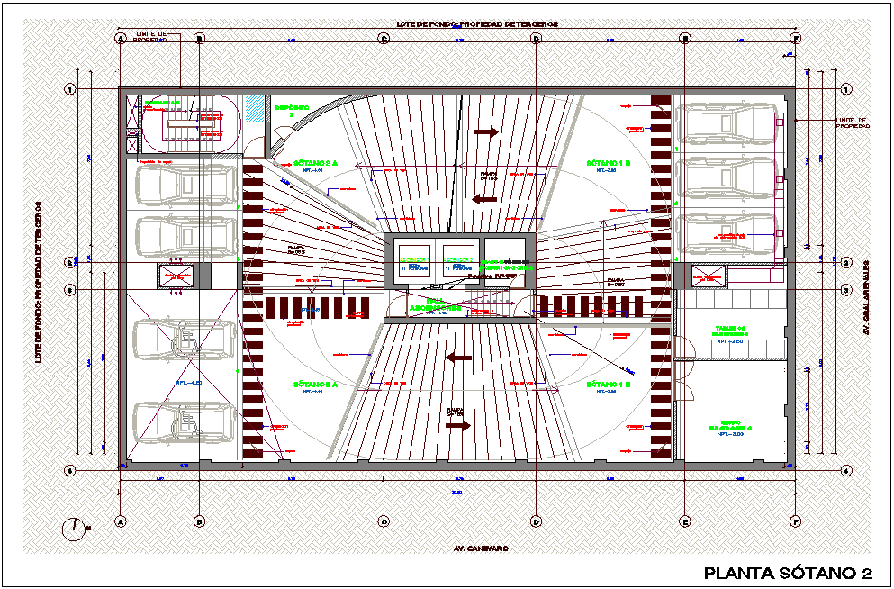 Second basement floor plan of office dwg file in plan with view of area distribution with wall and wall